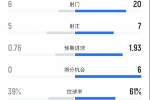 控球率39%-61%
