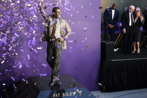 体育资讯2月23日讯 今日湖人为球队传奇主教练帕特·莱利举行雕像揭幕仪式。