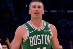 体育资讯2月23日讯 NBA常规赛,凯尔特人半场60-50领先湖人。