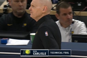 此时计时器显示进攻时间还剩15秒,布伦森还未过半场