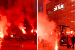 体育资讯3月18日讯 thisisanfield报道,加拉塔萨雷的球迷虽然被禁止进入安菲尔德观看欧冠比赛,但他们还是大量涌入利物浦,并在比赛前夜燃放了烟花和照明弹。