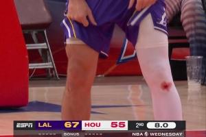 这其实是“拼命勋章”。东契奇从欧洲联赛时期(皇马、斯洛文尼亚国家队)就开始爱这样打球,膝盖老疤就是那时候留下的。从独行侠转战湖人,他的风格依然没有改变。