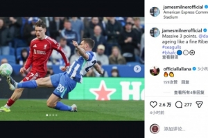 布莱顿中场米尔纳赛后在社交媒体上写道:“非常重要的三分,维尔贝克就像一瓶陈年佳酿(Ribena黑加仑果汁),越老越香。”
