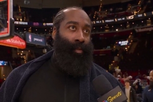 体育资讯2月25日讯 NBA常规赛,骑士109-94大胜尼克斯,本赛季首胜尼克斯,哈登赛后在场边接受了媒体采访。