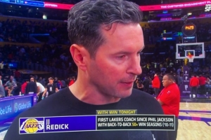 体育资讯4月1日讯 NBA常规赛,湖人上半场以65-53领先骑士,雷迪克接受了媒体采访。
