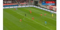 比赛第77分钟,武磊面对出击到禁区外的鲍亚雄,右脚推射稍稍偏出↓