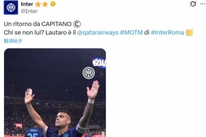 他也在今日被俱乐部官方评选为本场比赛的队内MVP。国米官方也点评道:“队长回归!除了他还能是谁呢?劳塔罗当选国米vs罗马的队内MVP。”