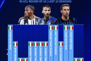 近15赛季欧冠16强意甲球队:连续2赛季仅1队,亚特兰大今年成独苗