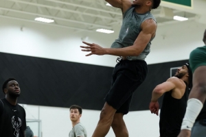 体育资讯2月22日讯 今日雄鹿球星字母哥晒出训练暴扣照。