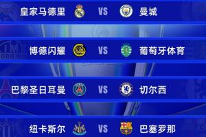 欧冠1/8决赛对阵:皇马连续5年碰曼城 巴黎vs切尔西 纽卡vs巴萨
